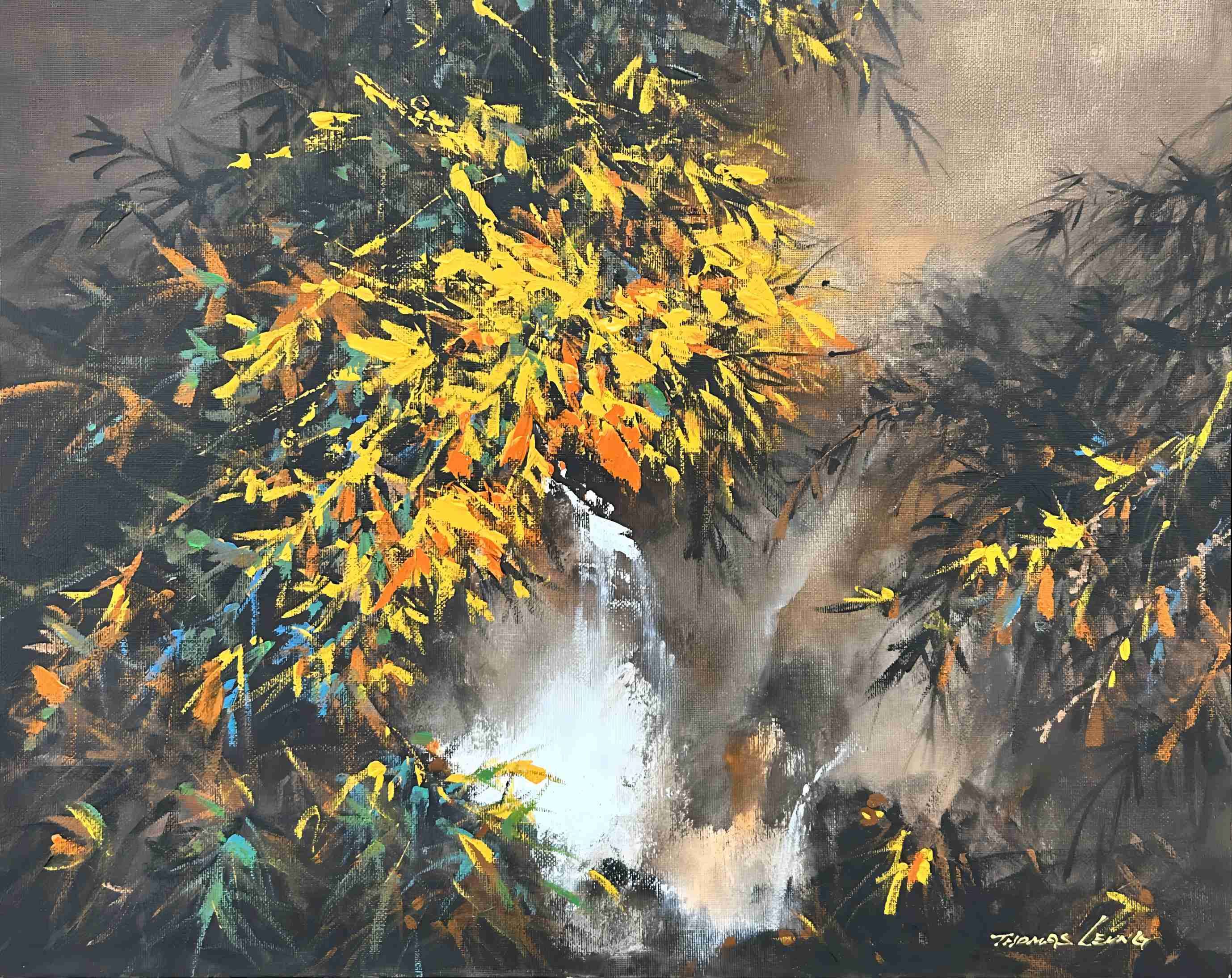 In crafting this piece, I was deeply inspired by the serene beauty and vibrant life of nature. The intricate dance of light and shadow, the interplay of colors within the foliage, and the cascading waterfall create a symphony of tranquility and vitality. This harmonious blend of fine art and oriental influences transcends the canvas, inviting a contemplative calm and an energized essence into any space it graces.